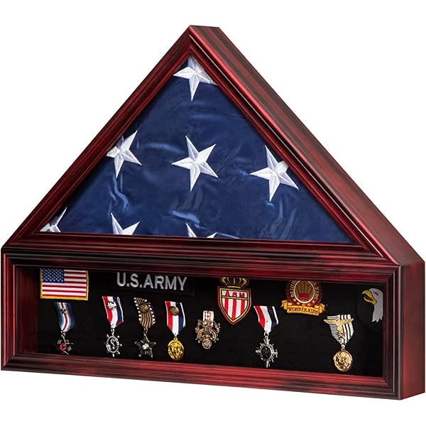 Flag Display Case Triangle Military Shadow Box With Flat Base Fits A Folded 5 5 X 9 8 Inch American Veterans Funeral Ceremony Real Glass Front Military Flag Case Cherry Amazon De Home Kitchen